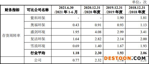 2018年至2021年1-6月,楚环科技存货周转率分别为1.51次、1.78次、2.32次、0.77次,同行业可比上市公司均值分别为2.06次、1.93次、2.30次、1.18次。