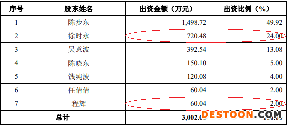 招股书显示,2014年6月,楚天有限第二次转让股权时,徐时永将其持有楚天有限5%的75.1万元出资额转让给张海宽,将其持有楚天有限2%的30.04万元出资额转让给程辉。
