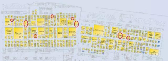 我们先通过2017年AAO网站发布的展馆平面图来了解下专门眼科激光治疗技术公司,看看他们分别在哪些角落里。