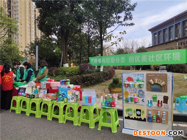 活动现场,大家纷纷被一个圆形的彩色大转盘吸引,在工作人员的指导下,居民转动转盘参与答题,回答正确后,可以领取垃圾袋、香皂、杯子等奖品。此外,现场由小朋友精心制作的创意垃圾分类作品同样引人瞩目,通过手工作品的展示,向居民生动形象地讲解了生活垃圾投放的有关知识,介绍了低碳环保的生活理念。