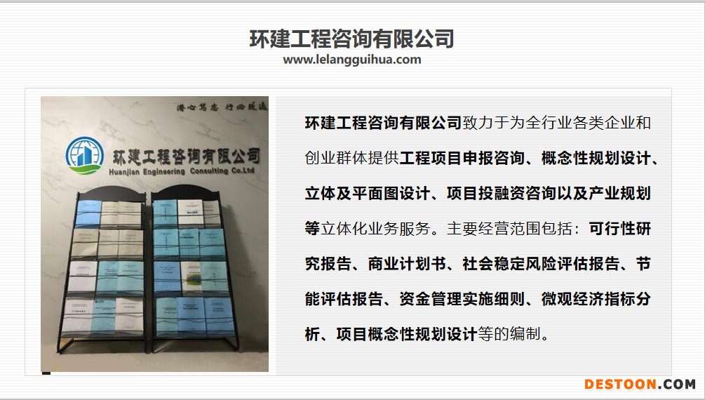 环建工程咨询有限公司提供项目可行性研究报告、分析报告、备案报告、项目建议书、项目计划书、商业计划书、投资计划书、经营计划书等专业策划及编写服务。我公司主创团队长期从事大型投资项目的策划与运作,其深厚的理论基础,较高的专业水平、丰富的实战经验、严谨的工作态度、良好的职业忠诚深受广大客户的好评。