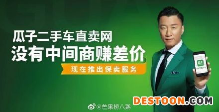 一些大家耳熟能详的广告词,比如“没有中间商赚差价”、“二手车市场领军者”、“车主多卖钱,买家少花钱”,并且还请到了“强哥”作为瓜子二手车的品牌代言人。