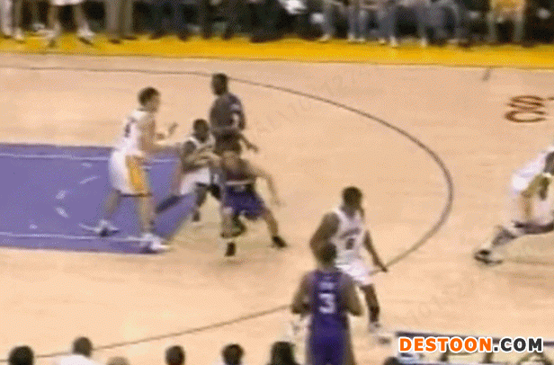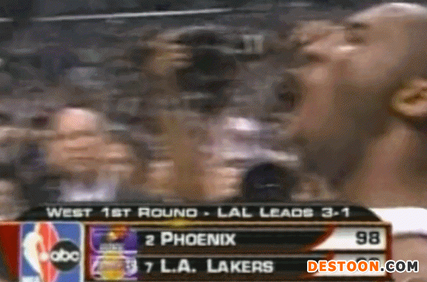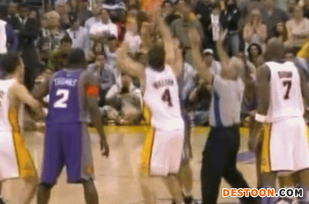 加时赛中两队比分犬牙交错,还剩6.1秒时湖人97-98落后1分,双方跳球。沃顿拼下球权,科比一路带球到三分线内突然急停跳投,球进灯亮,湖人完成绝杀!