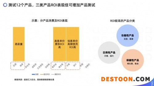 如根据第一批UC人群画像,测试阿里健康大药房养生茶、鱼油、保健品等10大类23款产品。测试后发现花茶、眼罩更容易获量,鱼肝油、牙膏等ROI更高,进而推动下一步的选品拓展。