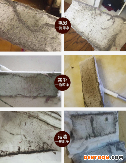 纸张是水刺无纺布材质,使用时摩擦会产生静电,加上纸张本身的轧纹结构也可以增加物理吸附,从而达到聚拢灰尘毛发的绝佳效果。