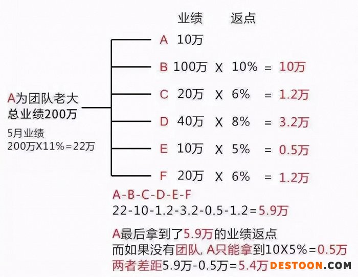 当A用户转发了链接给B用户,产生购买后可以分得一定比例的佣金;当比用户转发链接给C用户,产生购买后A、B都可以获得不同等级的佣金。