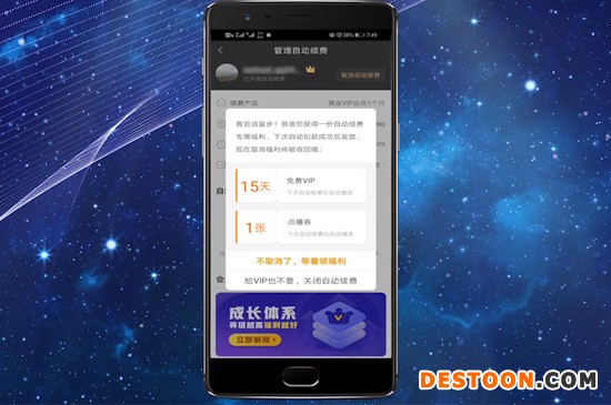 3、进入取消自动续费的界面后可以看到确认取消的提示,点击取消,之后会弹出另一个界面,点击页面上的关闭自动续费即可。