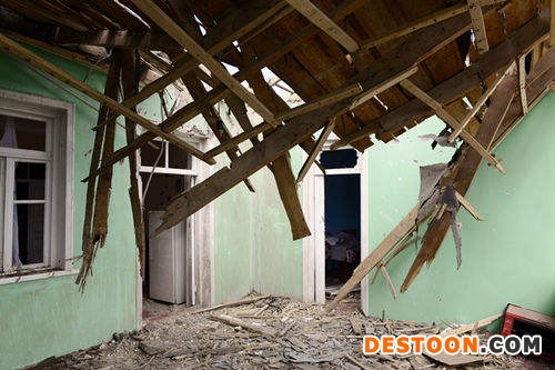 这是4日在阿塞拜疆境内靠近纳卡地区的格拉戈云鲁村拍摄的遭炮火损毁的房屋。新华社发(巴巴耶夫摄)