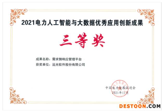 集团数字科技有限公司联合主办的“2021电力人工智能与大数据论坛”在北京召开,期间举行了电力人工智能与大数据优秀应用创新成果颁奖仪式,远光软件自主研发的电力需求侧响应管理