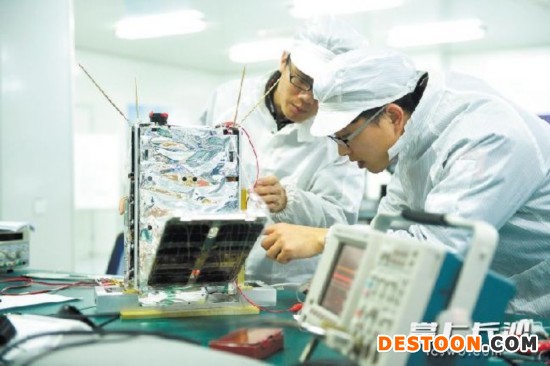 “潇湘一号”是由天仪研究院自主研制的微小型科学实验卫星,是我国第一颗由民营企业以纯商业模式自主研发制作的微小卫星。图为研究人员在长沙对“潇湘一号”卫星进行最后的测试。长沙晚报记者 黄启晴 摄
