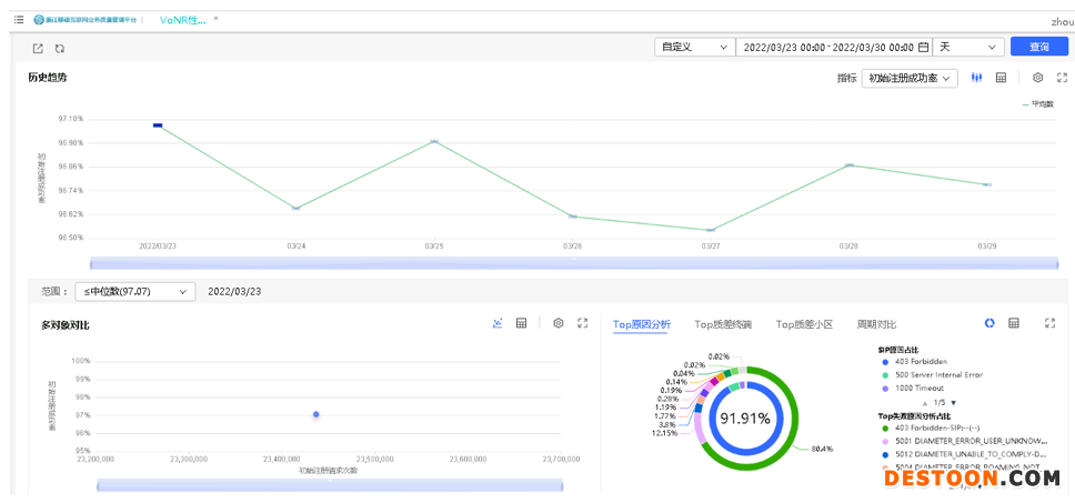 VoNR业务洞察准确识别存在异常的体验指标,并输出质差小区;VoNR性能分析能自动识别劣化点,并给出根因分析;VoNR时延分段,支持VoNR互打下接通时延分段呈现,并给出劣化分段。结合质差小区、质差终端、异常原因值等做到有的放矢的问题优化。