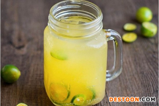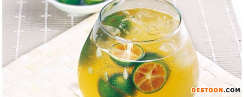 青金桔泡水,首先准备黄柠檬、青柠檬、青金桔、橙子,用盐洗去它们表面的蜡质,再将黄柠檬、青柠檬切成片状,橙子榨成橙汁。取一个杯子加入适量的清水,加入切好的材料,最后放入糖浆,蜂蜜、养乐多和橙汁调味即可。