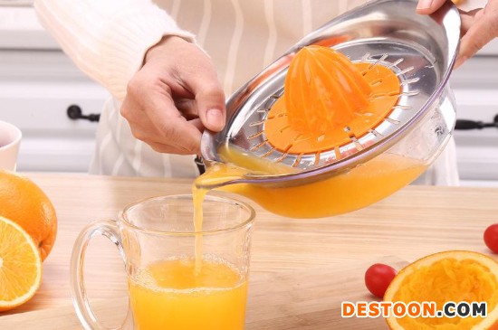 将对半切开的橙子都放入榨汁机中,榨成橙汁放在一旁。