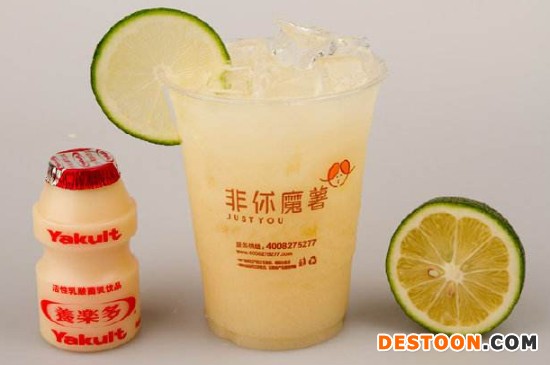 在杯子中淋上糖浆,蜂蜜,根据自己的口味加入适量的养乐多和橙汁,搅拌一下,最后放2个薄荷芽装饰一下,就可以饮用了。