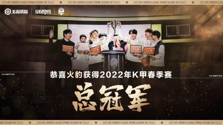 狄仁杰2022-05-01 22:46:28 5月1日讯 在今日晚上的2022K甲总决赛上,火豹战队以4-3的比分击败镇江VTG,成为2022年K甲春季赛总冠