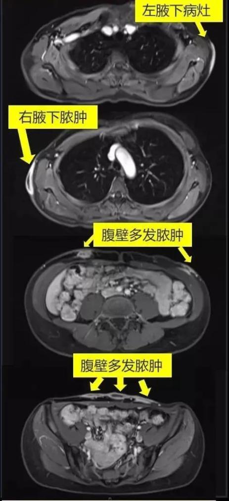 来到复旦大学附属中山医院感染病科门诊求助时,小美的情况已经更糟了:双侧腋下及腹部多发硬结较前进一步增大,脐周的病灶变成了一个鼓鼓的包块,右侧腋下和下腹壁的病灶也出现了溃破。“本来想追求美丽,没想到是这个结果。”小美既焦急又沮丧。为了进一步明确病因和诊疗,她被收治入中山医院感染病科病房。