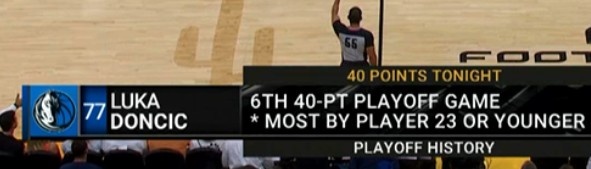 值得一提的是,这也是东契奇生涯季后赛第6次砍下40+,为NBA历史23岁及以下球员中最多!