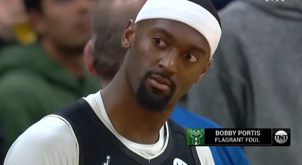 裁判在经过回放后,吹了波蒂斯一级恶意犯规。
