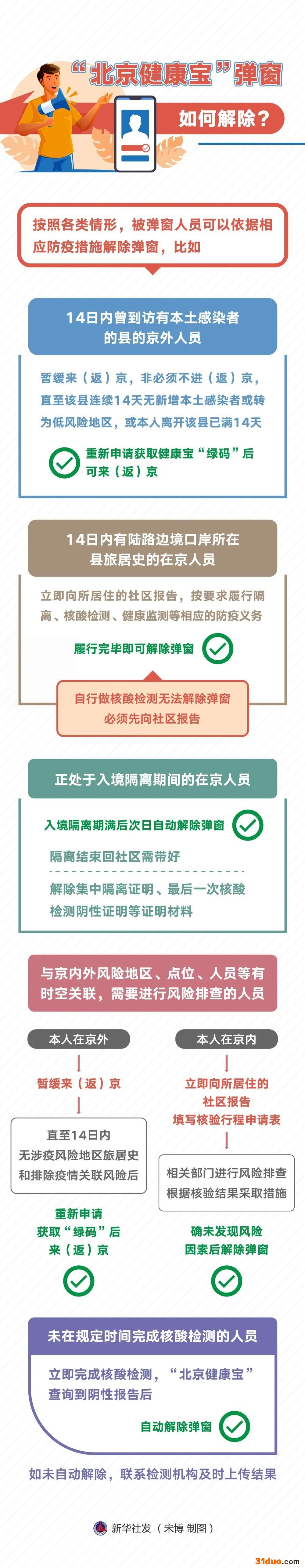 当前北京新冠肺炎疫情形势严峻复杂,市民出行或面临“北京健康宝”被弹窗的情况。哪些情形可能被弹窗?一旦被弹窗如何解除? 【