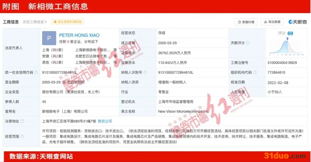 《红周刊》据天眼查网站查询到的信息显示,新相微成立于2005年,参保人数为45人,人员规模小于50人(详见附图)。而据上文所述,2020年燕东微员工人数少了276人,可见,新相微人数远低于燕东微当年缩减人数,再加上飞宇电路当年并表,应当会带来人员规模的增加,故上述合并报表范围的变化,难以解释公司员工规模的异常变动。