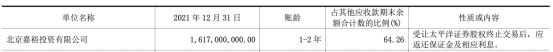 年报显示,截止2021年末,华创阳安有16.17亿元应收款来自北京嘉裕投资有限公司(简称“北京嘉裕”),该款项为受让太平洋证券股权终止交易后,北京嘉裕应返还华创阳安的保证金及相应利息。华创阳安表示,因已经申请强制执行并被法院受理。运用估值模型进行估值资产覆盖率较高,预计可得到全额清偿,故未计提坏账准备。