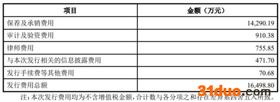 公司本次发行费用总额为16,498.80万元,其中海通证券获得保荐及承销费用14,290.19万元。