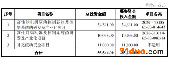 峰岹科技上市发行募集资金总额为189,344.97万元,扣除发行费用后,募集资金净额为172,846.18万元。公司最终募集资金净额比原计划多117302.18万元,根据2022年4月15日峰岹科技的招股说明书显示,公司拟募集资金55,544.00万元,用于高性能电机驱动控制芯片及控制系统的研发及产业化项目、高性能驱动器及控制系统的研发及产业化项目和补充流动资金项目。