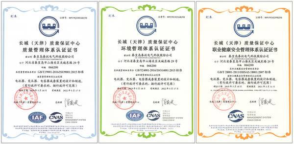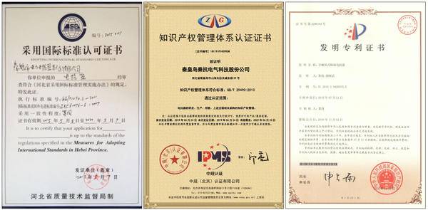 产品顺利通过国家变压器质量监督检验中心(沈阳)、国家高压电器质量监督检验中心(西安)、国家电器产品质量监督检验中心(苏州)的型式试验。拥有全国最大电流的短路试验报告,软件著作权、发明专利,实用新型专利等多项。是国家高新技术企业,并获得“国家火炬计划”、“科技型中小企业技术创新基金”、“河北省中小企业名牌产品”等殊荣。