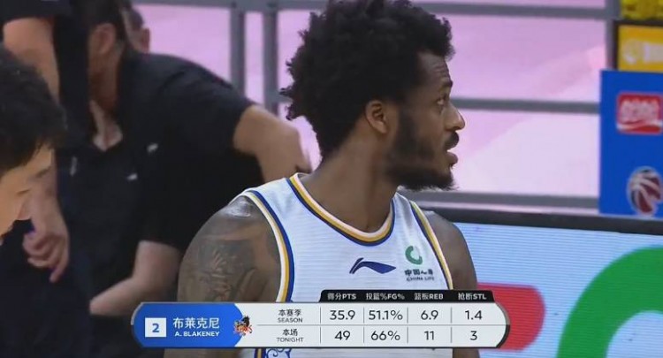 本场比赛江苏队外援布莱克尼的表现可以说为江苏撑起了半边天,他此战表现极佳,在44分钟出场时间里29投19中,三分7投3中,罚球18中10,得到51分11篮板3助攻3抢断2帽(图片数据是尚未完场时),也是约瑟夫-杨之后第二位在复赛中砍下50+的球员。