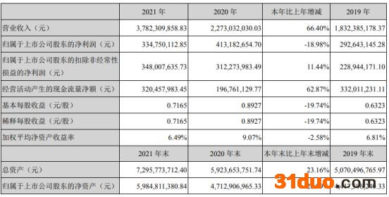 雅克科技2021年实现营业收入37.82亿元,同比增长66.40%;归属于上市公司股东的净利润3.35亿元,同比下滑18.98%,公司增收不增利现象严重。