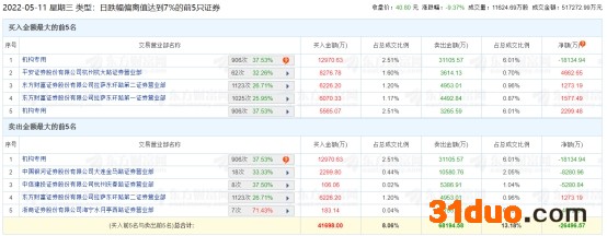 中国经济网北京5月11日讯浙江建投(002761.SZ)今日股价下跌,截至收盘报40.80元,跌幅9.37%。 龙虎榜数据显示,买入浙江建