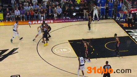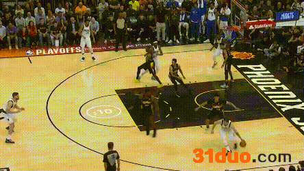 是的,G5太阳防东契奇的方式跟之前变化有限,蒙蒂坚持了单防,看东契奇多久耗光体能。不过,太阳的单防从来不是纯粹的单防,上线会收附近兵力封堵突破路线,刷卡积极。所以东契奇大打小的效果会比小打大更好,因为大打小可以碾进去,小打大要过人,被刷卡干扰的可能性就更大。东契奇会在一些回合,被太阳附近的刷卡骚扰打乱节奏,时间不够,不得不选择更高难度的出手。