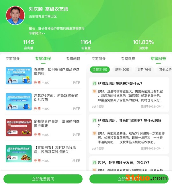 谈点感悟吧,这两三年来,惠农网农技学堂一直在进步,不断优化对农技专家的服务,同时也提升了专家的服务水平。而对于农技学堂的种养户,不仅可以免费咨询农业生产难题,更人性化地推出网页版、手机APP和小程序等,方便农户发现问题及时提问。