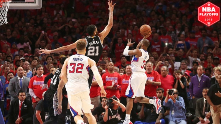 2014年马刺卷土重来终于夺冠,打破了“偶数年不夺冠”的魔咒,但他们仍无法卫冕。2015年首轮马刺遭遇保罗领军的快船。马刺一度夺得天王山之战的胜利,取得赛点,但快船仍将系列赛拖入抢七。当年抢七可谓经典,保罗最后时刻面对邓肯补防完成绝杀,马刺无奈出局。