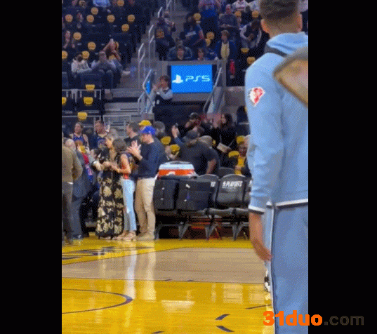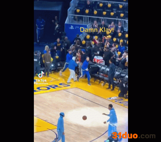 网友记录,克莱在入场仪式冲进球场的时候不小心撞翻了一位老大爷,后来普尔把老大爷扶了起来,老大爷自己走回了座位。