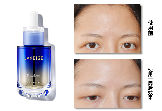 如图可见,使用前肤色暗沉,肤质松弛,额头有明显细纹;使用一周后,肤色明显提亮,肤质细腻饱满有弹性,恢复透亮色泽,脸部轮廓更加紧致,证明兰芝致美紧颜修护精华液能有效改善初老痕迹,帮助肌肤维持年轻状态。