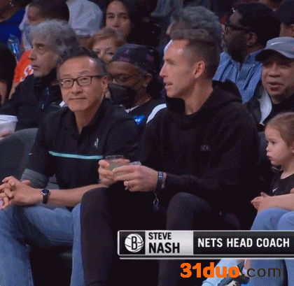 自由人、篮网老板蔡崇信与篮网主帅纳什今日一同来到现场观战,并在场边相谈甚欢。