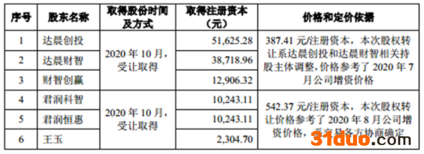 需要指出的是,按照小影科技所述,达晨创投、达晨财智、财智创赢入股的价格是参照2020年7月时的增资价格,而君润科智、君润恒惠、王玉入股时是参照2020年8月的增资价格。