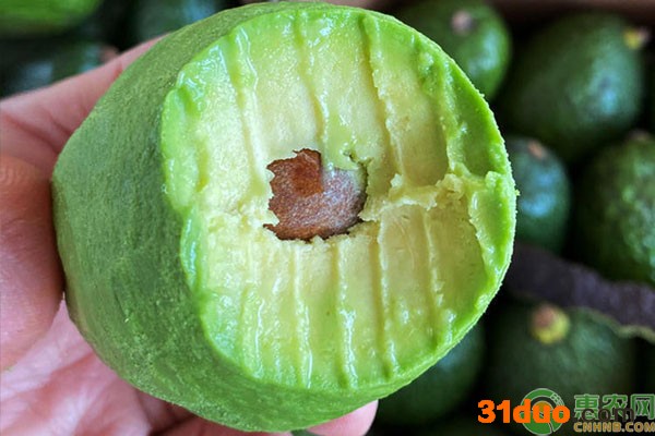牛油果有翠绿色、墨绿色和介于这两种之间的颜色。如果马上就吃,选择墨绿色,颜色越深成熟度越高,黑色成熟度最高,翠绿色表示没有成熟,口感也不好。
