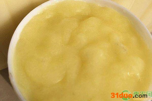 纯正蜂王浆外观看上去形似奶油,冷冻时呈固体状,呈乳白色或淡黄色,如果用手捻一下会感觉到细腻和黏滑。