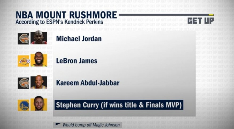 谈到NBA总统山,帕金斯说道:“如果库里夺第四冠,并收获FMVP,这就不光是历史前十了。他将代替魔术师约翰逊成为历史第一控卫,并且出现在NBA总统山上。”