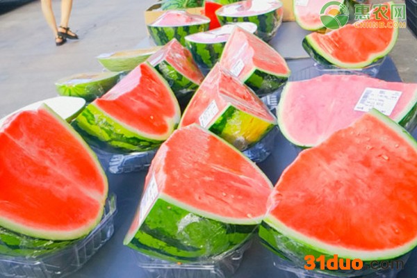 4.目前市场上的无籽西瓜大多产自海南和河南,这两个地方的特点都是昼夜温差大,天气炎热,适合西瓜种植。相比本地西瓜,外地来杭的无籽西瓜比较甜一点。