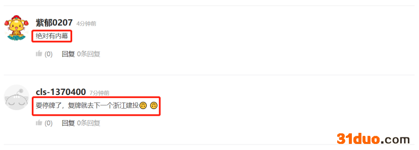 此公告一出,财联社APP评论区可谓是“炸开了锅”。有人表示,:“绝对有内幕”,“要停牌了,复牌就去下一个浙江建投”也有人表示,“停牌减持二选一”,“监管来了”。