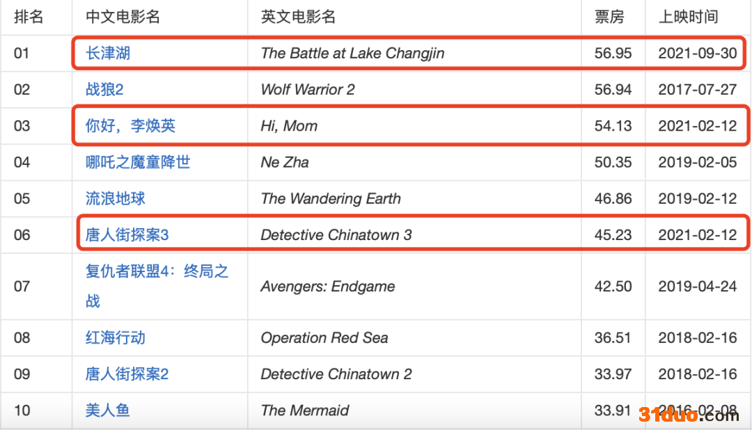 图2:中国电影票房榜