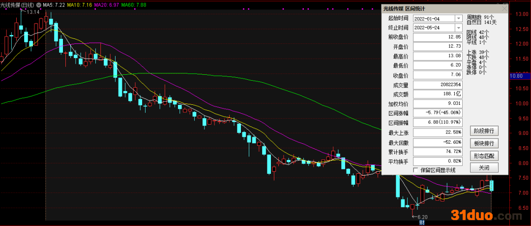 图1:光线传媒2022年股价走势图