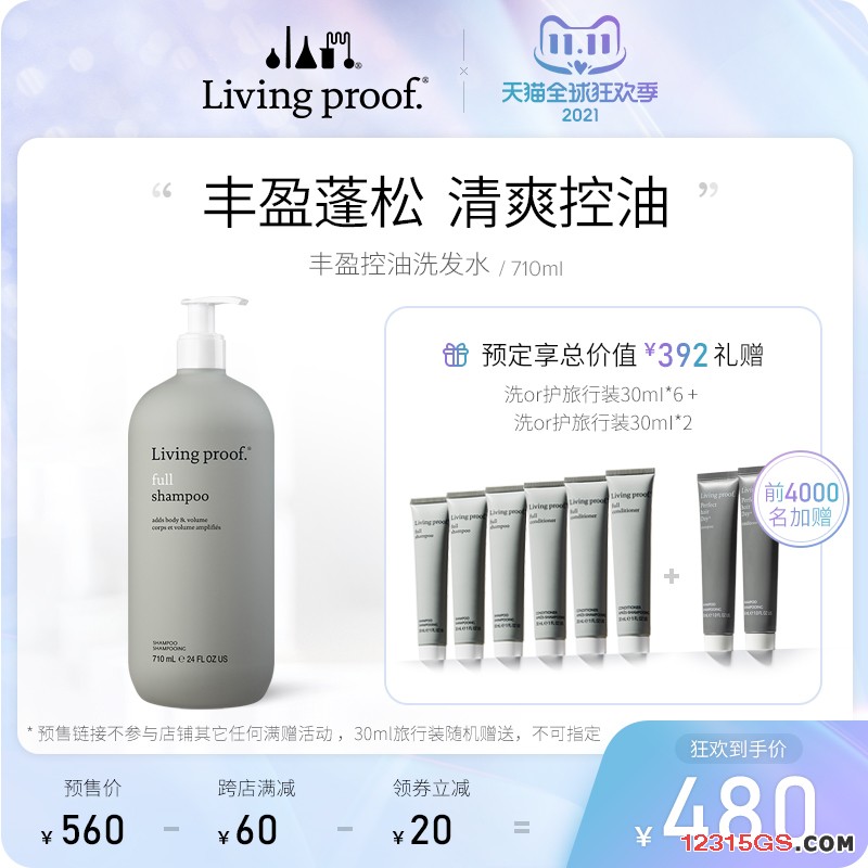 【双11预售】Living Proof丰盈控油洗发水710ml 深层清洁去油