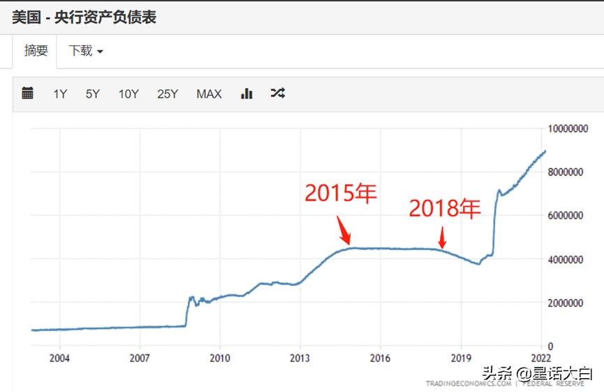 但美联储资产负债表是从4.2万亿美元,扩表到8.9万亿美元。