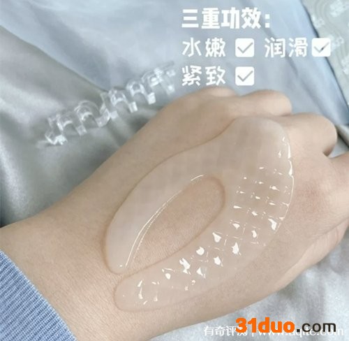 可贝尔眼纹消质地摸起来有点像啫喱的感觉,比较软糯,很服帖,它是属于越贴越薄的类型,所以也不会觉得厚重,我在使用这款眼膜的时候,很明显的有感觉它在吸收,我一般贴15-30分钟取下来,眼膜很明显的有变薄一些,有时候为了避免浪费,我还会在嘴角八字纹的地方贴一贴。