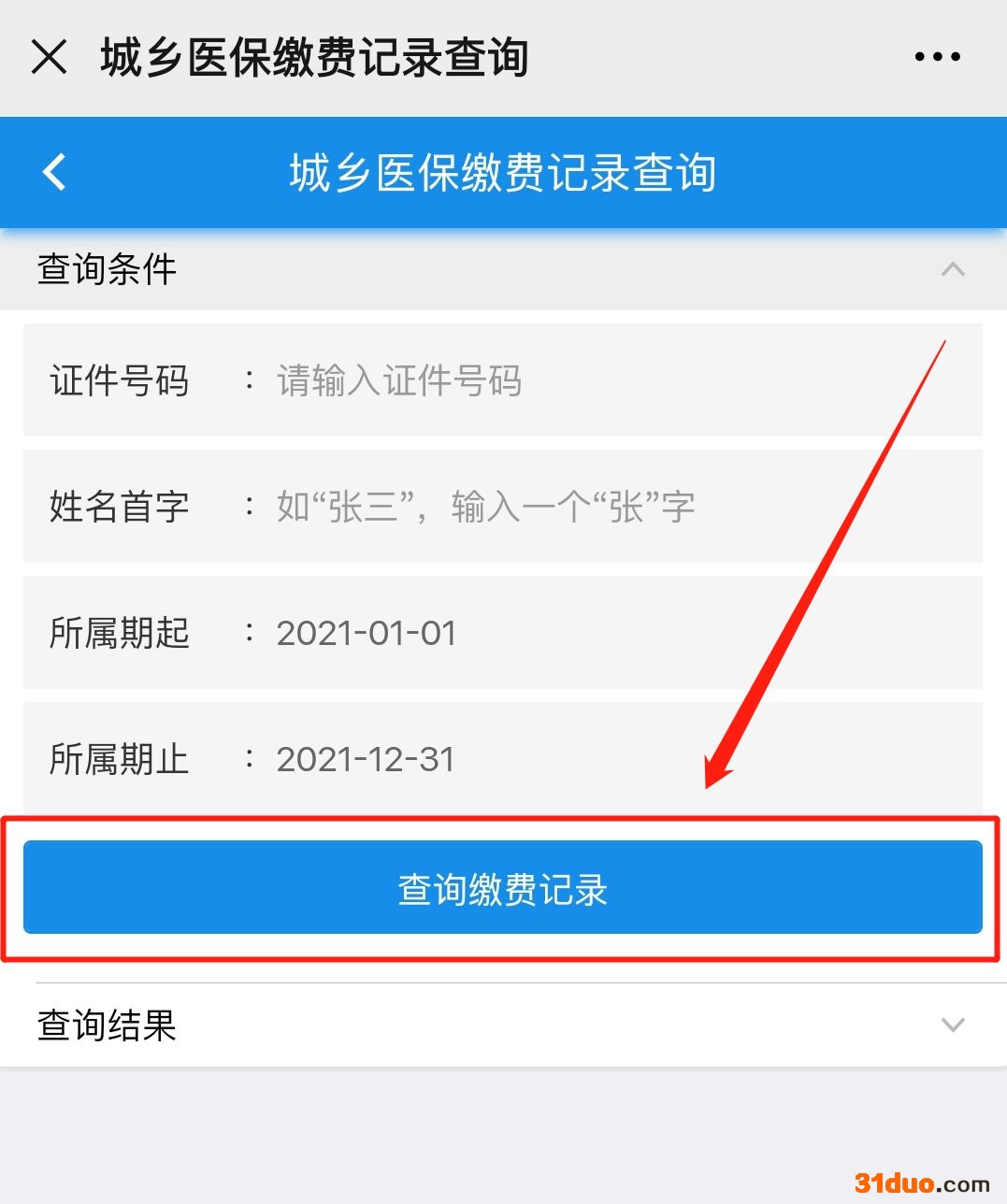 4.在查询界面中输入个人身份证号码、姓名首字和日期后,点击下方的“查询缴费记录”即可查询到个人医保缴费信息。