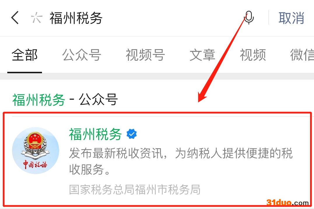 1.使用微信搜一搜搜索“福州税务”,并关注福州税务微信公众号;